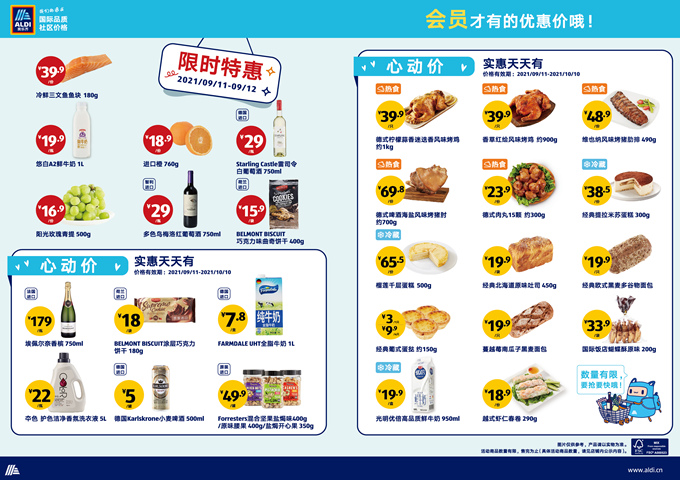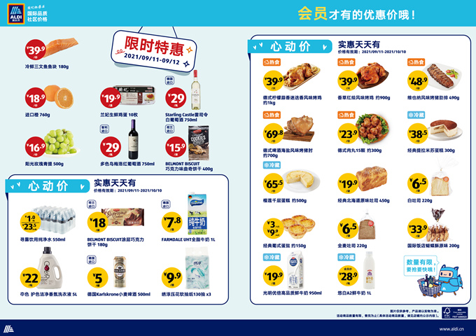 不仅如此,新店开业还为奥家会员们带来了多重专属惊喜特惠。9月11日-9月12号日, ALDI奥乐齐热销酒水、生鲜水果等均有限时特惠,快抓紧时间到新店尝鲜!另外,当月累计消费满800元,即可获得钻石礼包,享受次月所有商品、所有时段、所有订单减6%的优惠!连续两月获得钻石礼包,还可领取加码好礼一份。超多会员优惠福利,等你来抢!